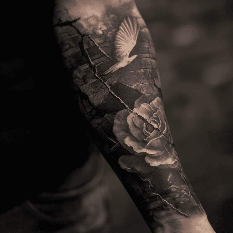 3D-Tattoos schaffe optischi Illusione wo Zweidimensionalität vo Haut dur kunstvolli Schattierig überwinde. Dene hyperrealistisch Designs simuliere Tiefe, Volumen und räumlich Perspektive. Trompe-l'œil Effekt verwirrt Betrachter wenn flachi Haut zu dreidimensionale Kunstwerk transformiert wird. Illusionskunst wird real wenn optischi Täuschig zu permanente visuelli Magic und Staunen-Erzeugig führt.
