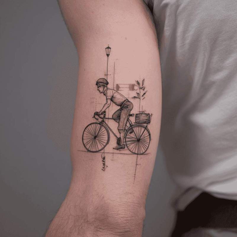 Radsport-Tattoos symbolisieren Ausdauer, Freiheit und die Kraft der Fortbewegung aus eigener Kraft. Sie repräsentieren Nachhaltigkeit, Gesundheit und Verbindung zur Umwelt. Diese dynamischen Designs ehren die Schönheit menschlicher Energie. Sie verkörpern Umweltbewusstsein und nachhaltige Mobilität. Cycling-Tattoos repräsentieren oft persönliche Herausforderungen und überwundene Grenzen. Sie ehren die Gemeinschaft der Radfahrer und geteilte Abenteuer. Diese Designs verkörpern Balance, Rhythmus und die Meditation der Bewegung. Sie repräsentieren Freiheit, Unabhängigkeit und körperliche Stärke. Sie lehren über Ausdauer, Nachhaltigkeit und die Schönheit einfacher Fortbewegung.