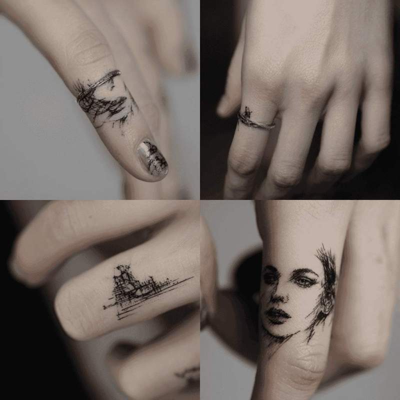 Feminine Fingerkunst maximiert Ausdruck auf minimalster Fläche. Zarte Ringe, winzige Symbole oder koordinierte Buchstaben schaffen permanenten Handschmuck. Diese herausfordernden Mikrotattoos erfordern Präzision und Pflege, bieten aber einzigartige Möglichkeiten für diskrete, bedeutungsvolle Körperkunst.