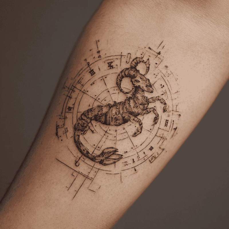 Astrologische Identität definiert sich in Sternzeichen-Tätowierungen durch die zwölf Tierkreiszeichen. Himmlische Einflüsse und Persönlichkeits-Merkmale werden durch diese kosmischen Designs dargestellt. Verschiedene Sternzeichen-Darstellungen und Kombinationen bieten individuelle Interpretationen.